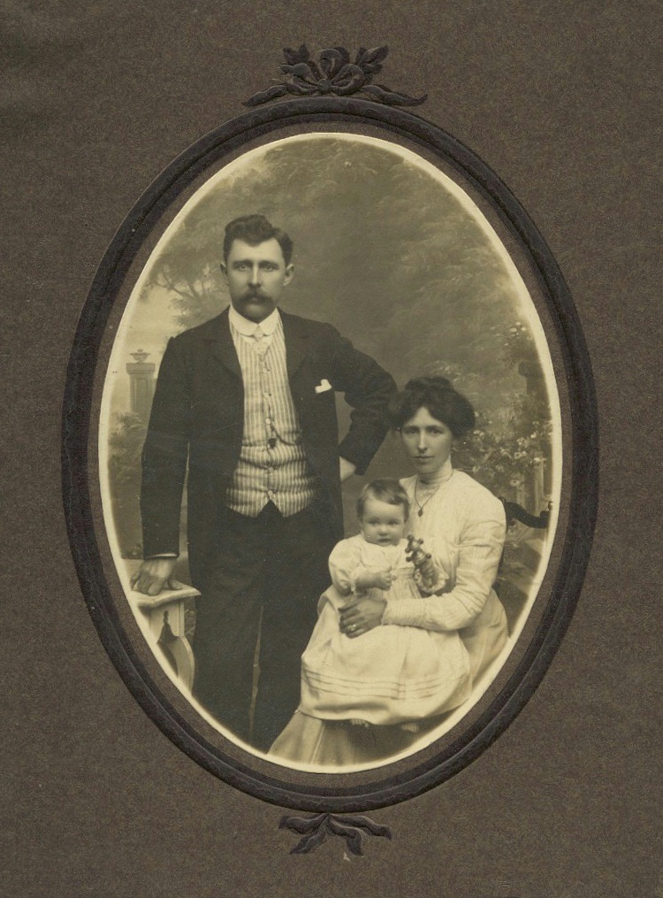 Grandfather and Grandmother with Auntie Morag, about 1 year